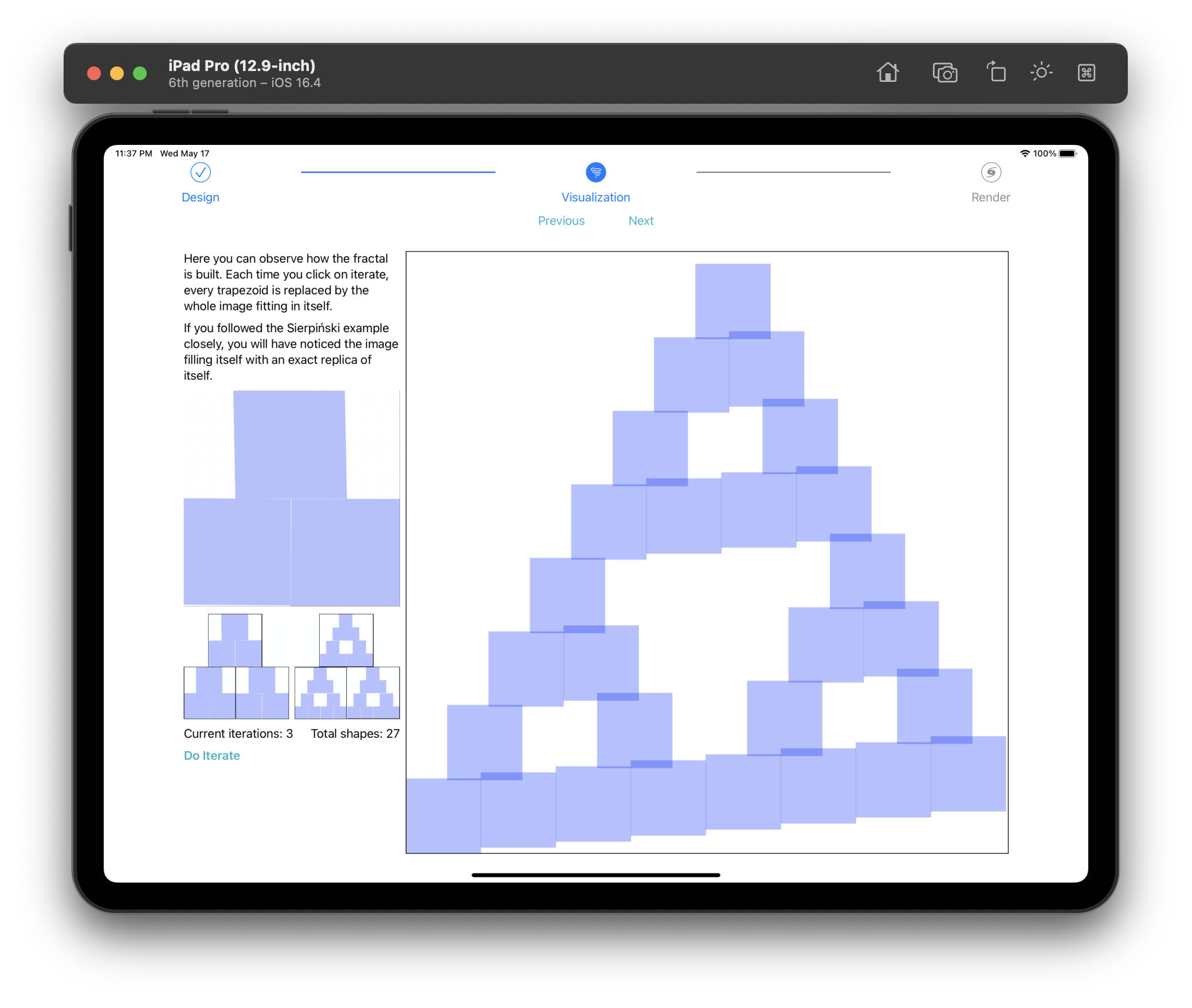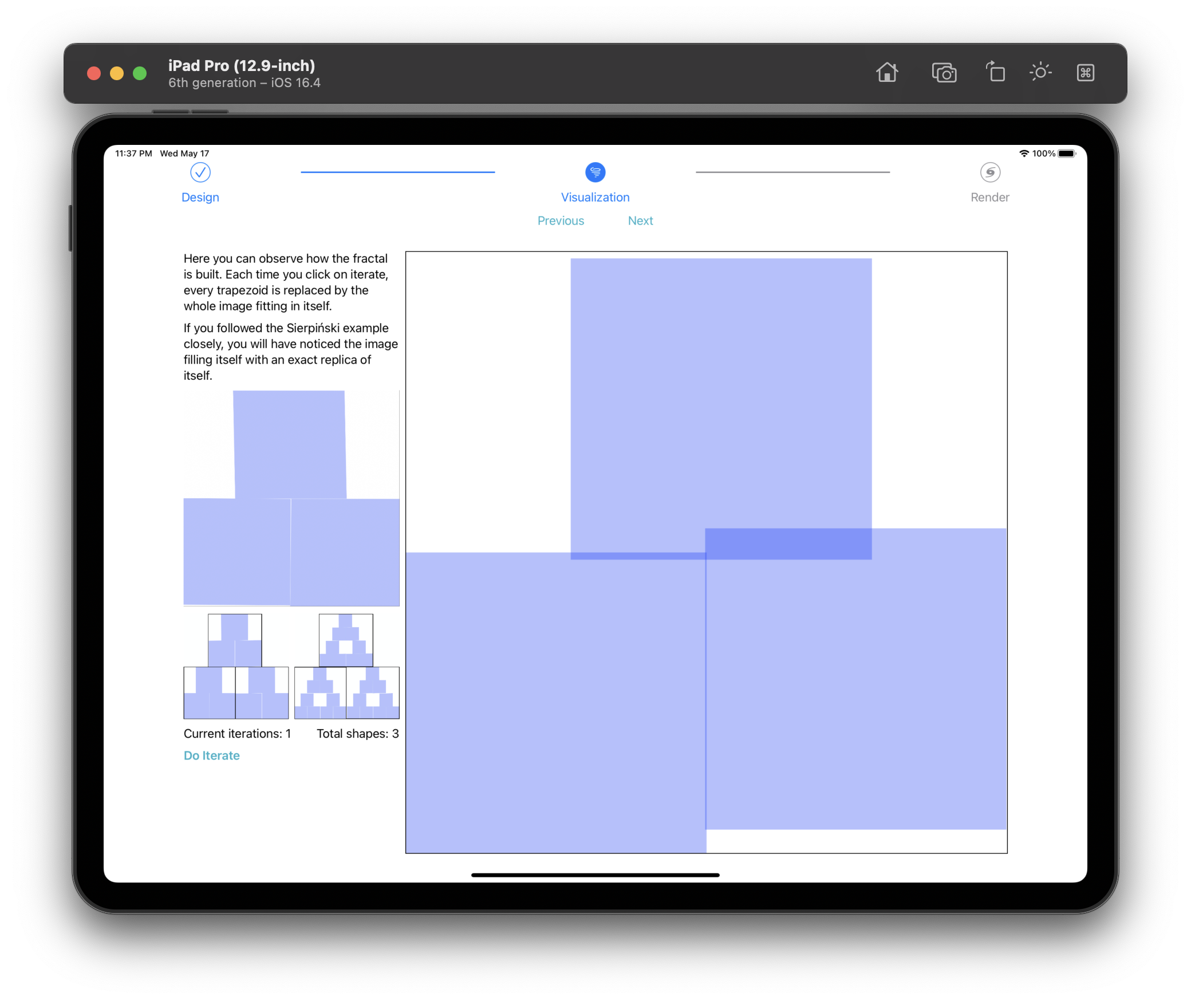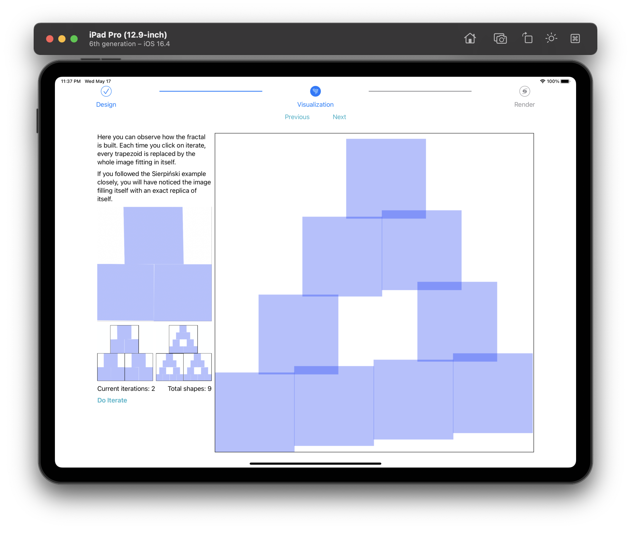 For the visualization part, I made an “Iterate” buttom which will call the iterate function above and plot the new parallelograms.